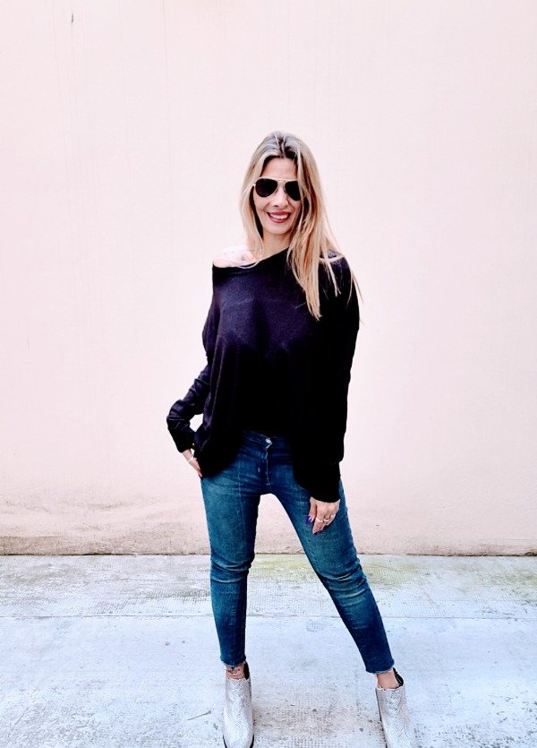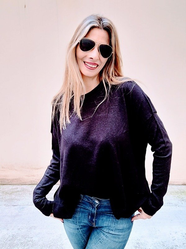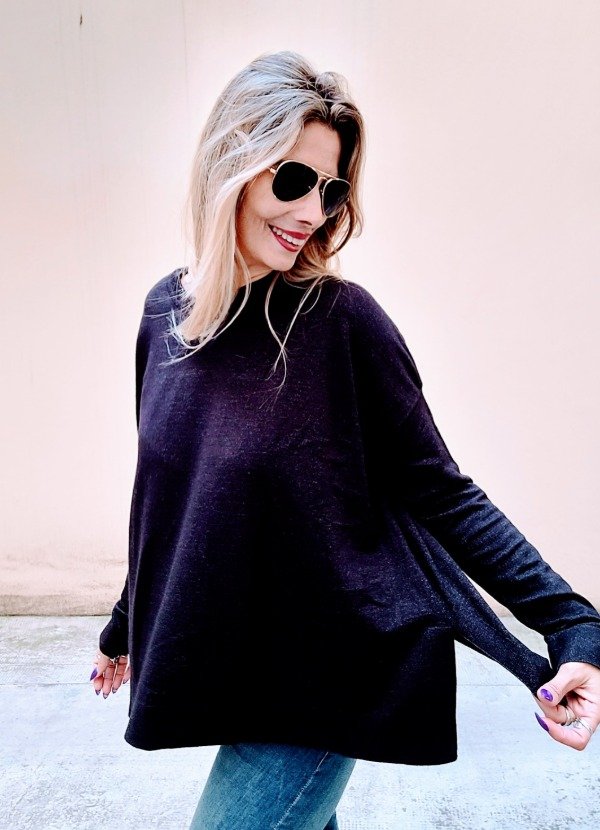 Este sweater de bremer corte rectangular es liviano, suave, suelto, cómodo, simple y clásico. Qué más necesitás? Tiene tajitos laterales para no ajustar ni marcar.
