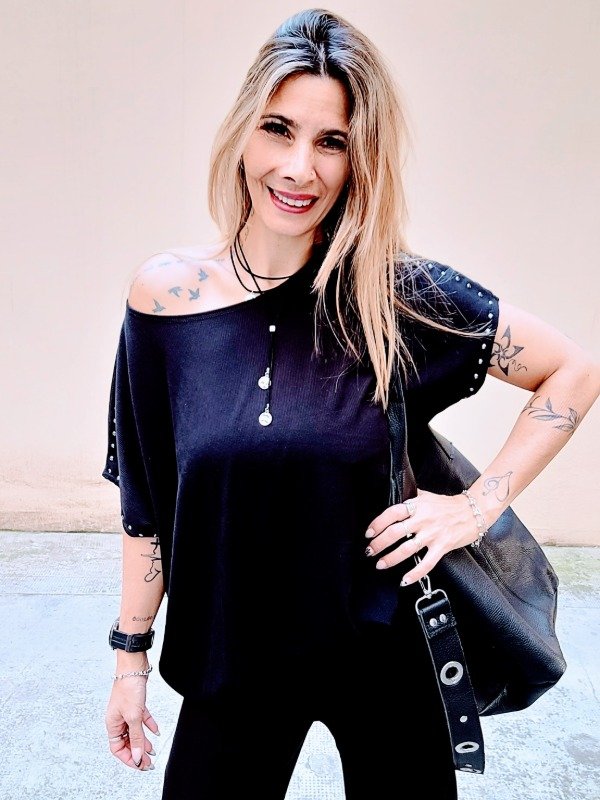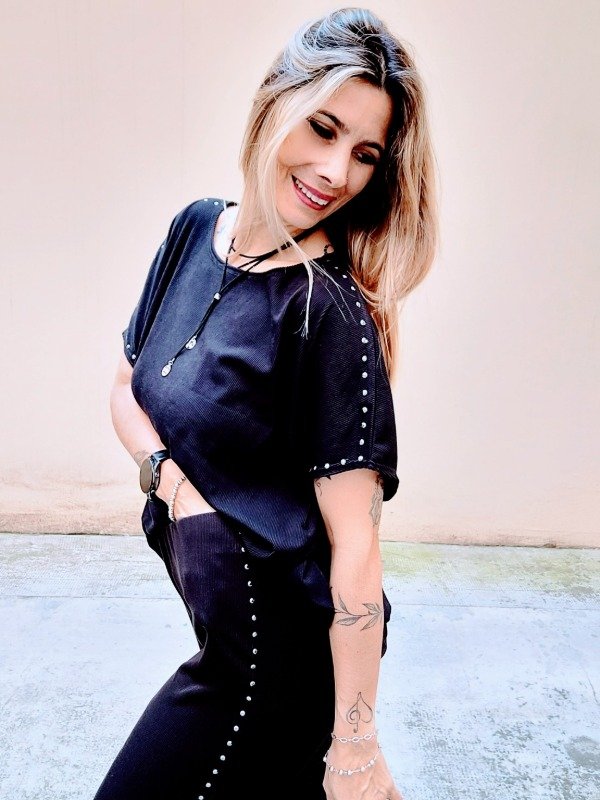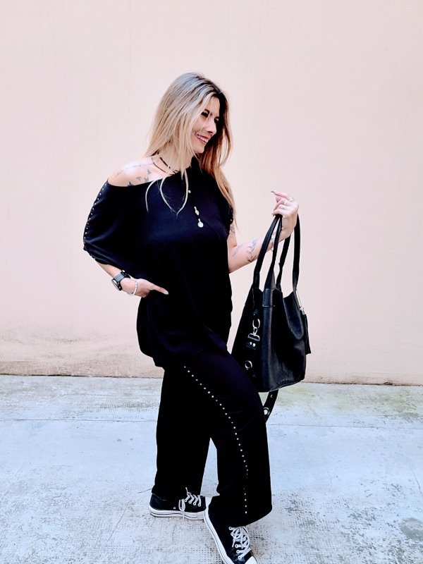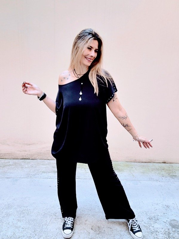 👉Descripción: 🦋Conjunto de morley con tachas, compuesto por Remera y Palazzo recto ancho, también con hilera lateral de tachas🦋