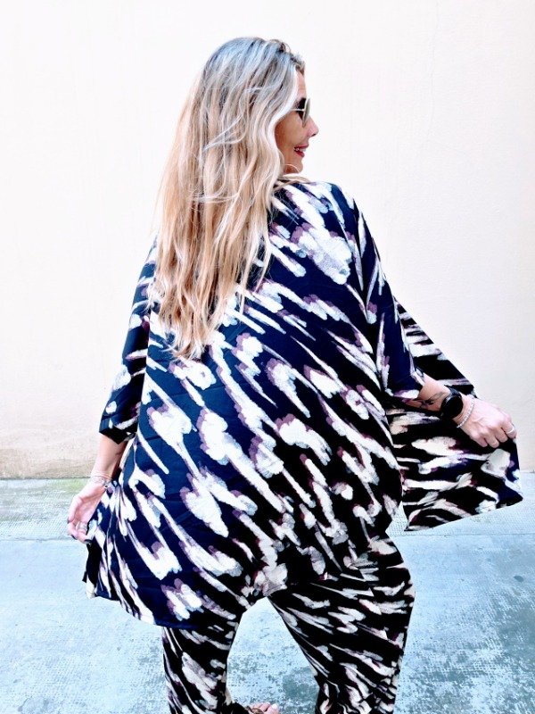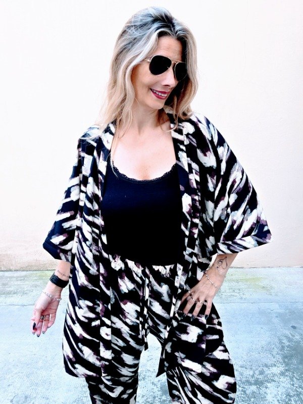 👉Descripción: 🧵Kimono y Palazo de seda tipo saten estampado (no brilloso).