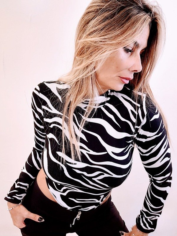 👉Descripción: Body de morley estampado, cuello mediapolera, con broche inferior.