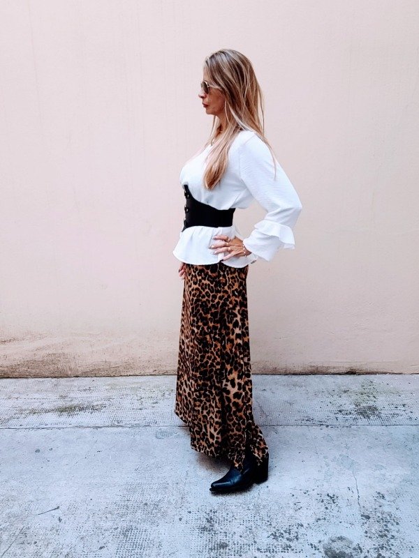 👉Descripción: Pollera evasé de lanilla con tajito lateral y cintura elastizada.