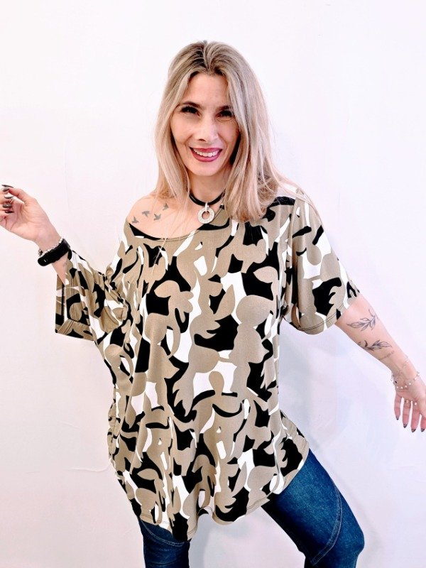👉Descripción: ✴️Maxi Remeron de seda fria estampado, corte cuadrado oversize.