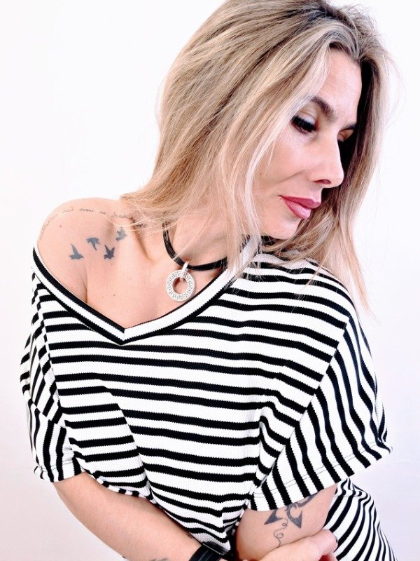 👉Descripción: ✴️Maxi Remeron tejido wafle escote en V rayado. Con tajitos laterales.