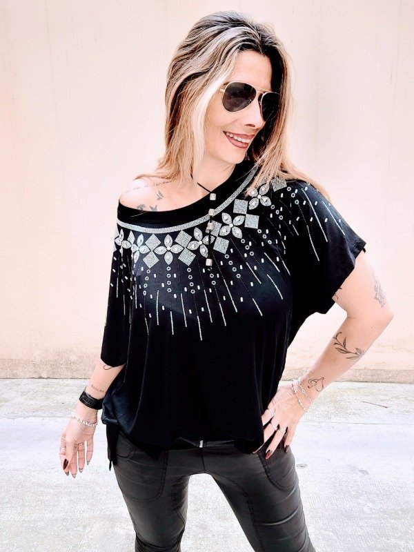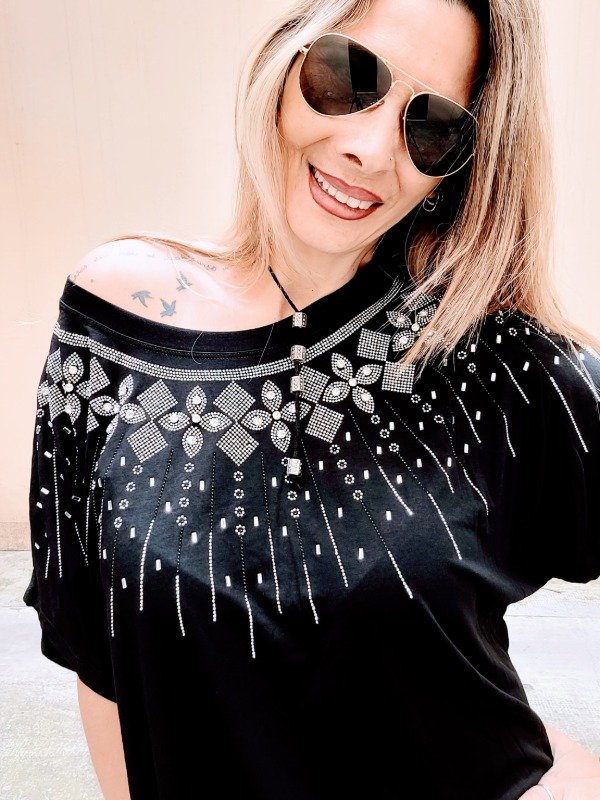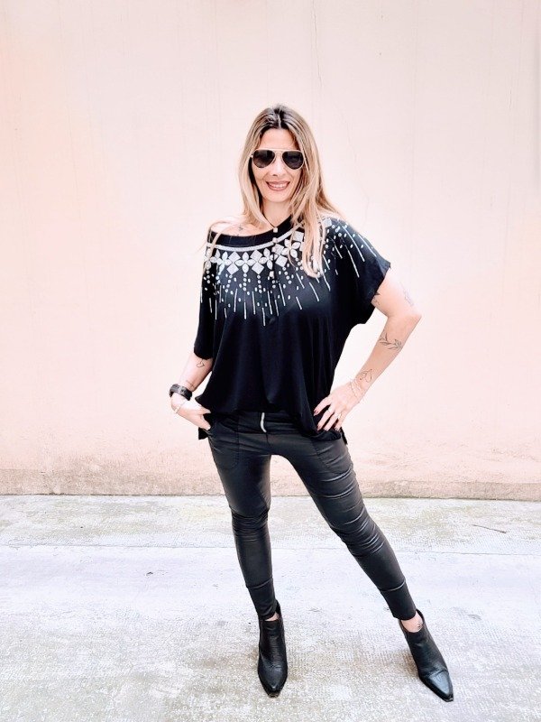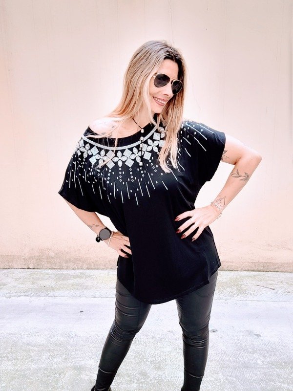 👉Descripción: 📷Remerón oversize importado de crep viscosa, con tachas strass y canutillos 📷