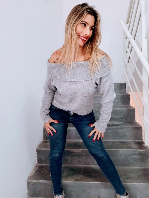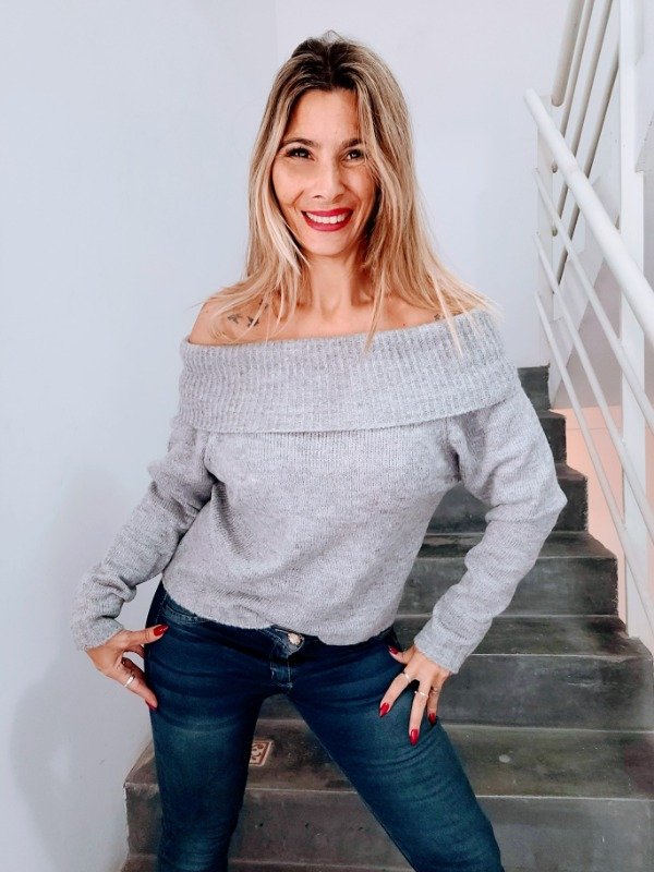 👉Descripción: Sweater tejido cuello bote hombros descubiertos.