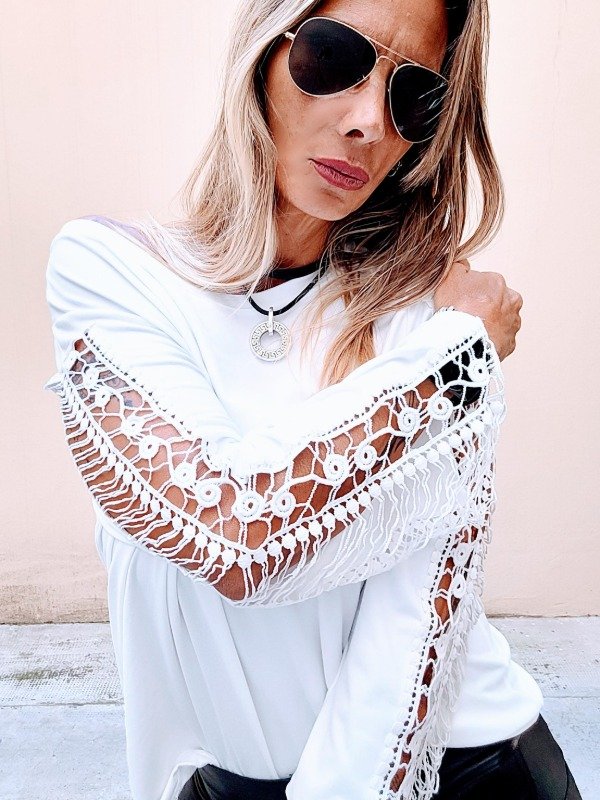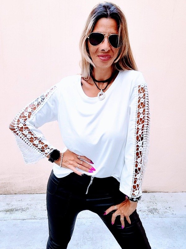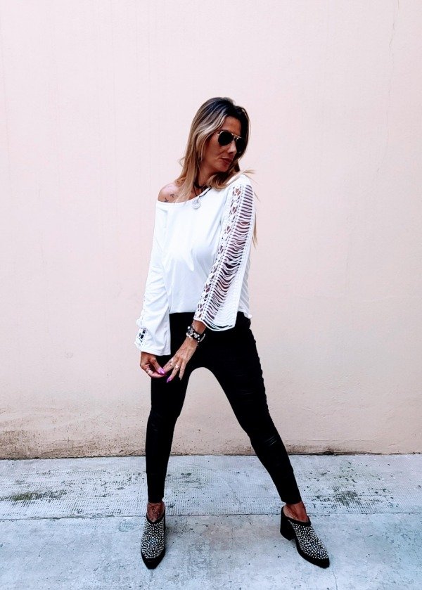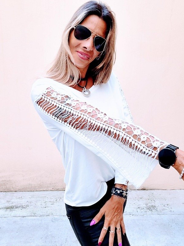 👉Descripción: 💋Remera de modal combinada con mangas de crochet.💋