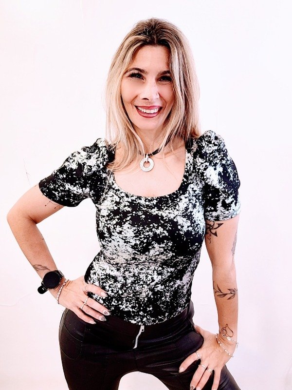 👉Descripción: 🍀Remera manga princesa en morley con foil plateado🍀