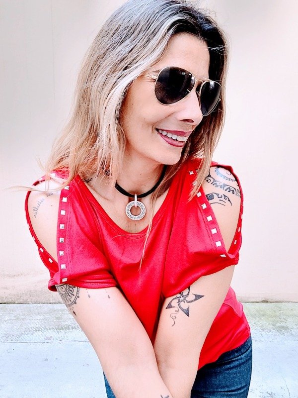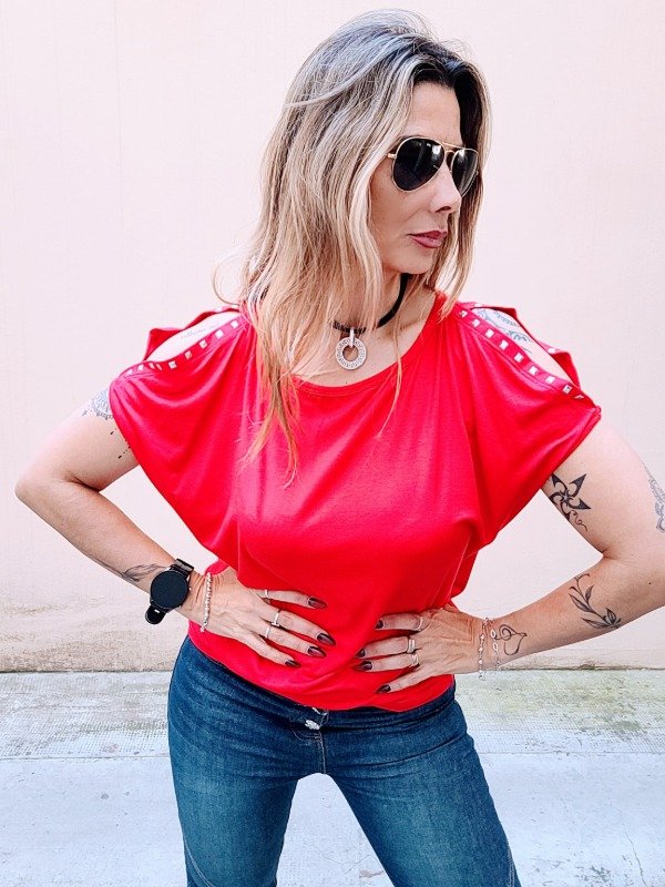 👉Descripción: 💚 Remera de modal viscosa, con hombros descubiertos e hilera de tachas.