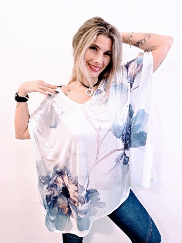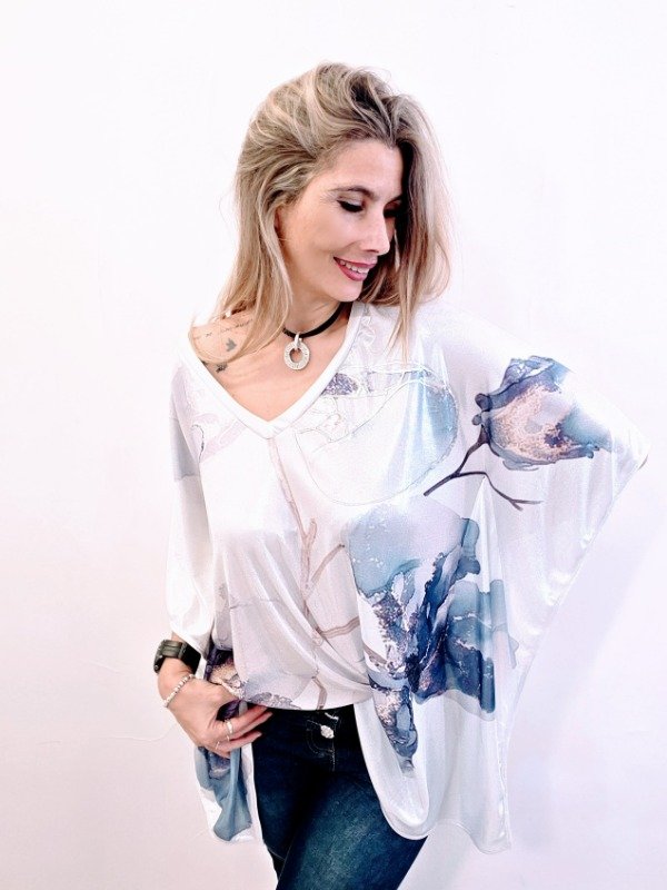 👉Descripción: 💕Ponchito de lurex, escote en V sublimado artesanalmente con detalles en foil.