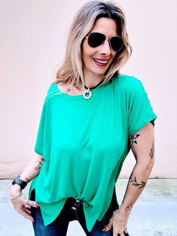 👉Descripción: 💚 Remeron de morley con perlas plateadas en las mangasmy tajitos laterales.