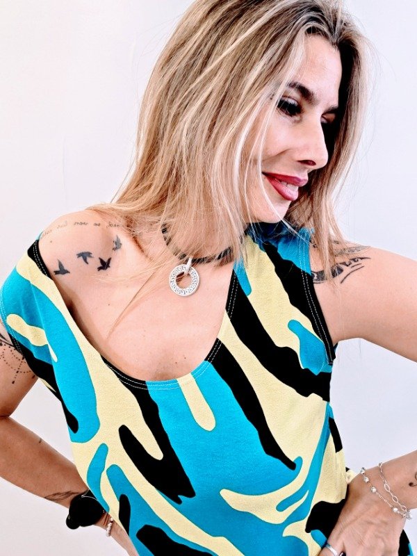 👉Descripción: ✴️Remera sin mangas de crep elastizado estampado.