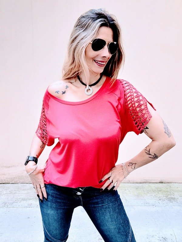 👉Descripción: 💚 Remera de modal viscosa, combinada con mangas en crochet.