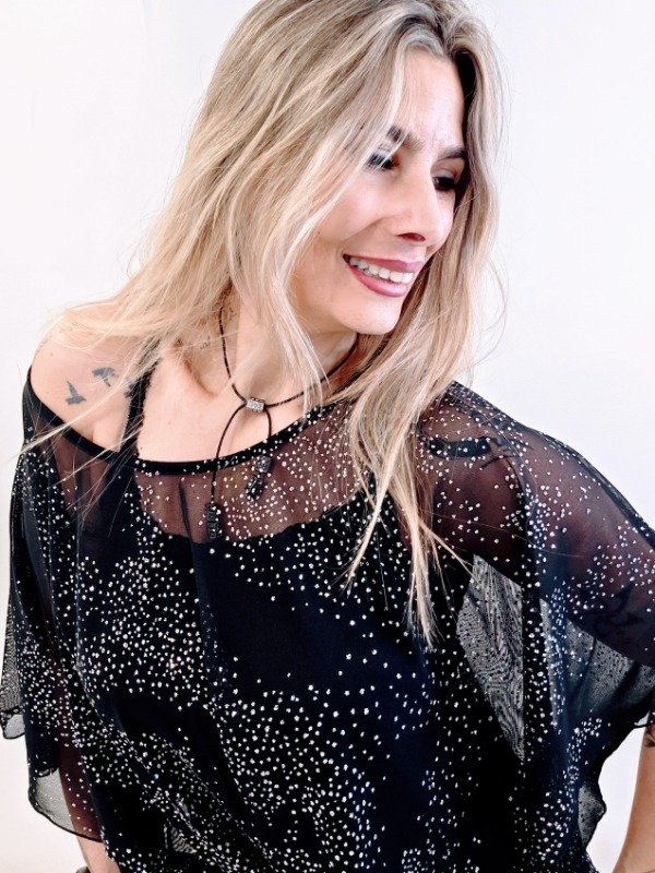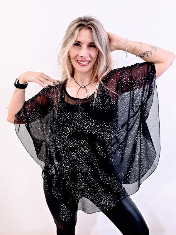 👉Descripción: 🔆Ponchito túnica de gasa con pintitas en foil dorado. Corte circular. Liviana y levemente transparente aporta movimiento y frescura. Es amplia, cómoda y con un calce que se adapta a todos los cuerpos, ideal para usar tanto de día como de noche.