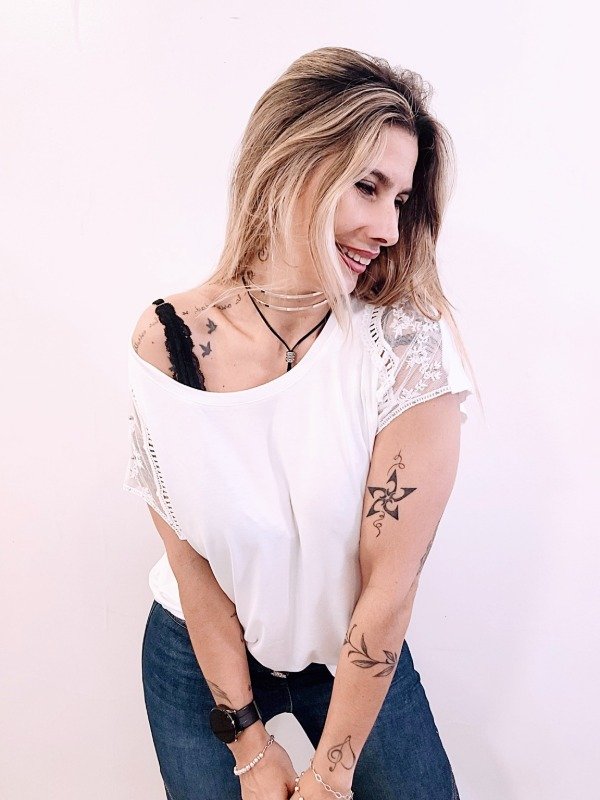 👉Descripción: 🌼Remera de modal combinada con mangas crochet❣️