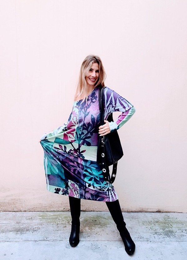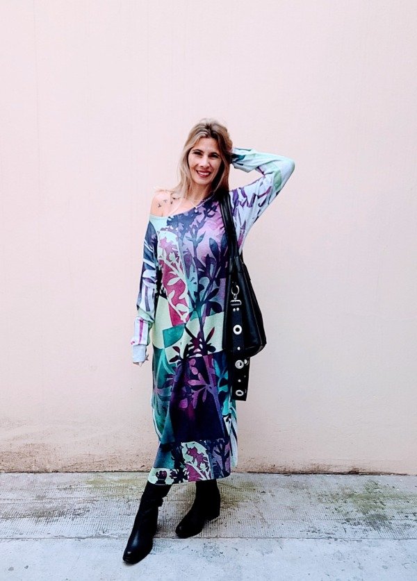 👉Descripción: Vestido de lanilla suave, sublimado artesanal.