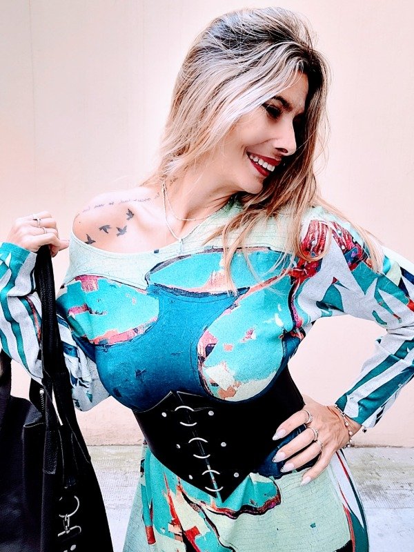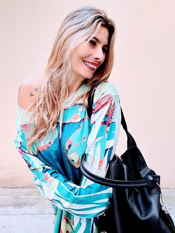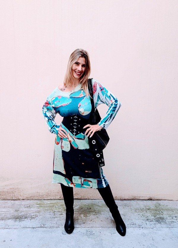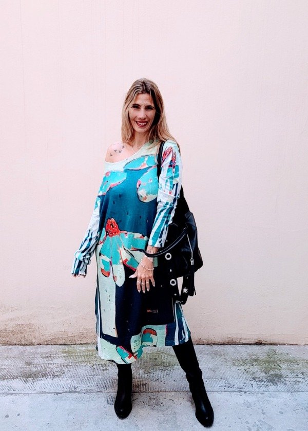 👉Descripción: Vestido de lanilla suave, sublimado artesanal.