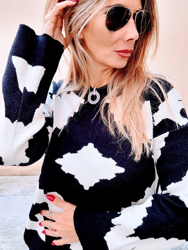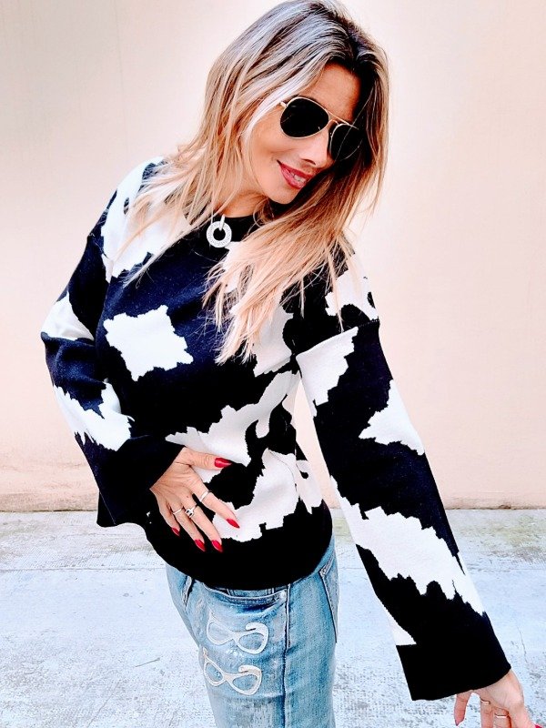 👉Descripción: Sweater tejido bremer con diseño bicolor. Mangas anchas.