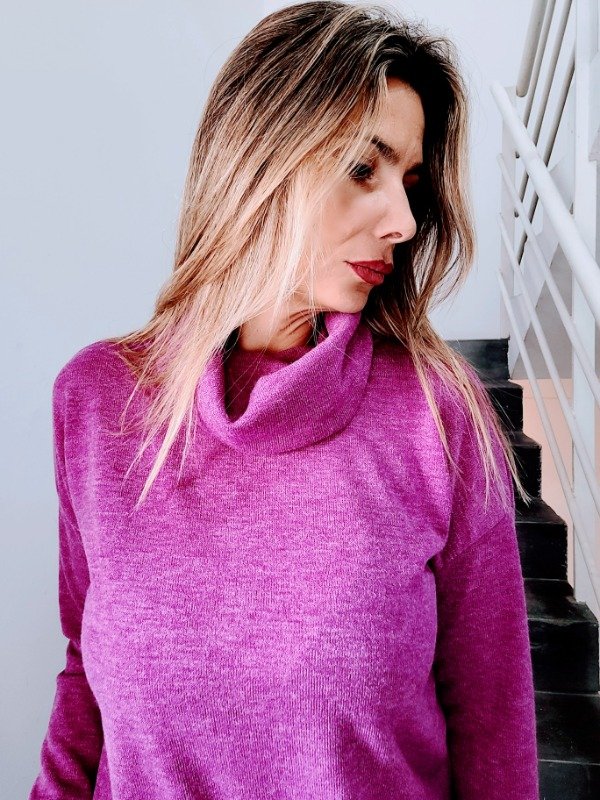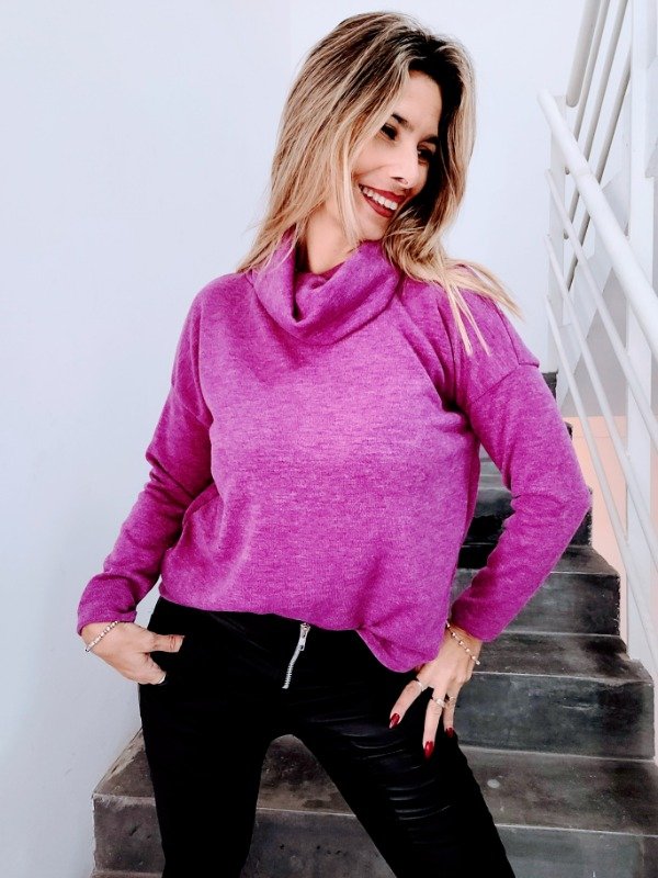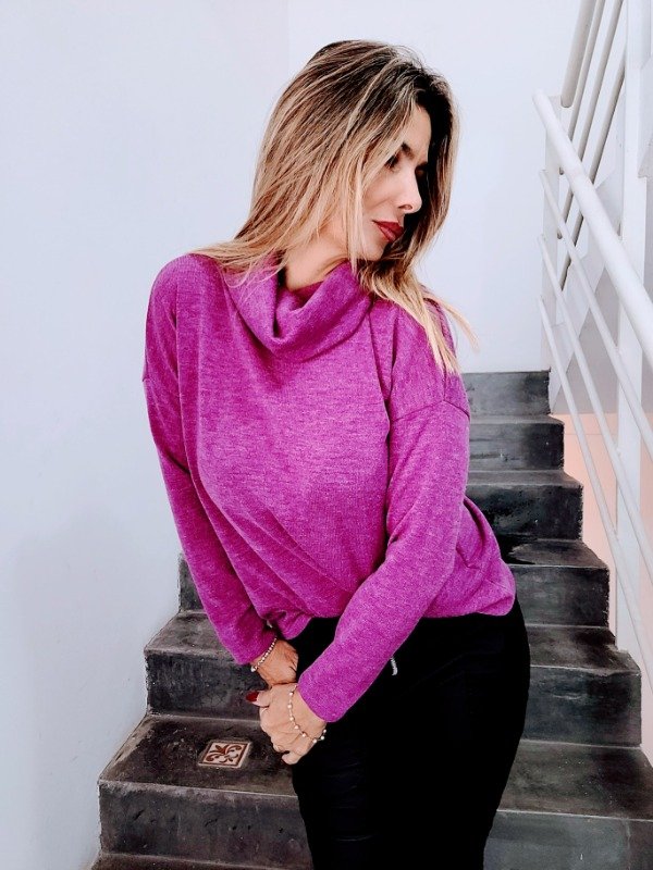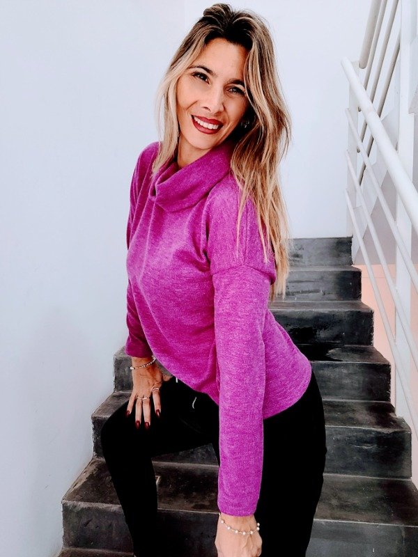 👉Descripción: Polera de lanilla jaspeada, con cuello volcado.