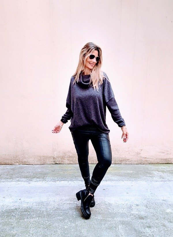 👉Descripción: Maxi Polerón cuello volcado de lanilla morley. Corte amplio y recto.
